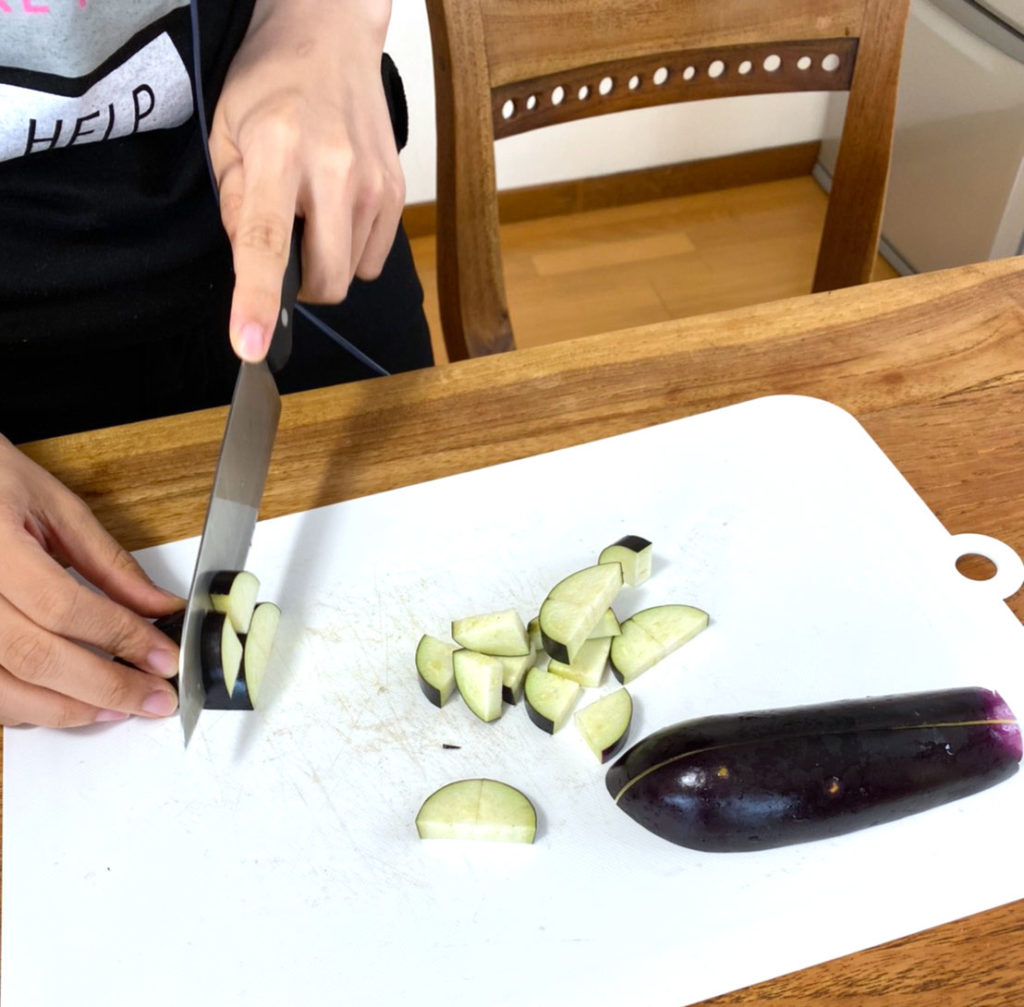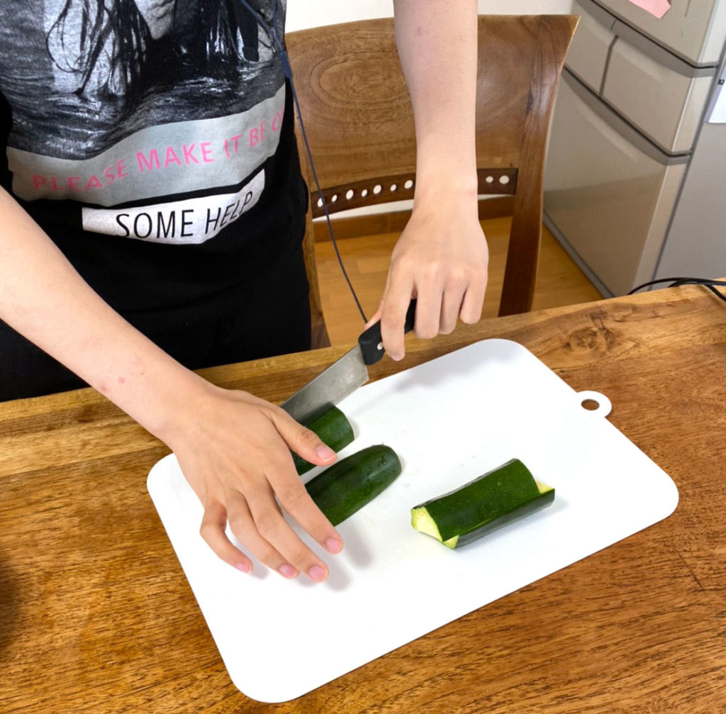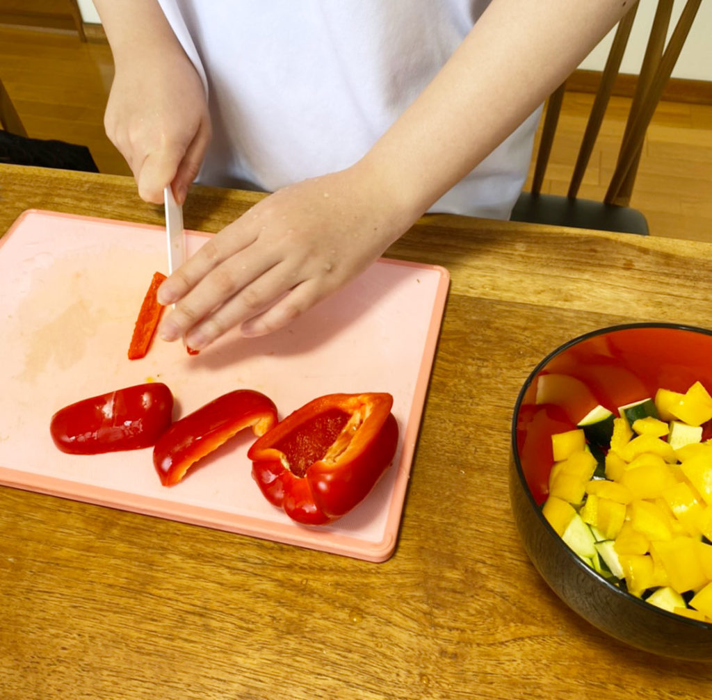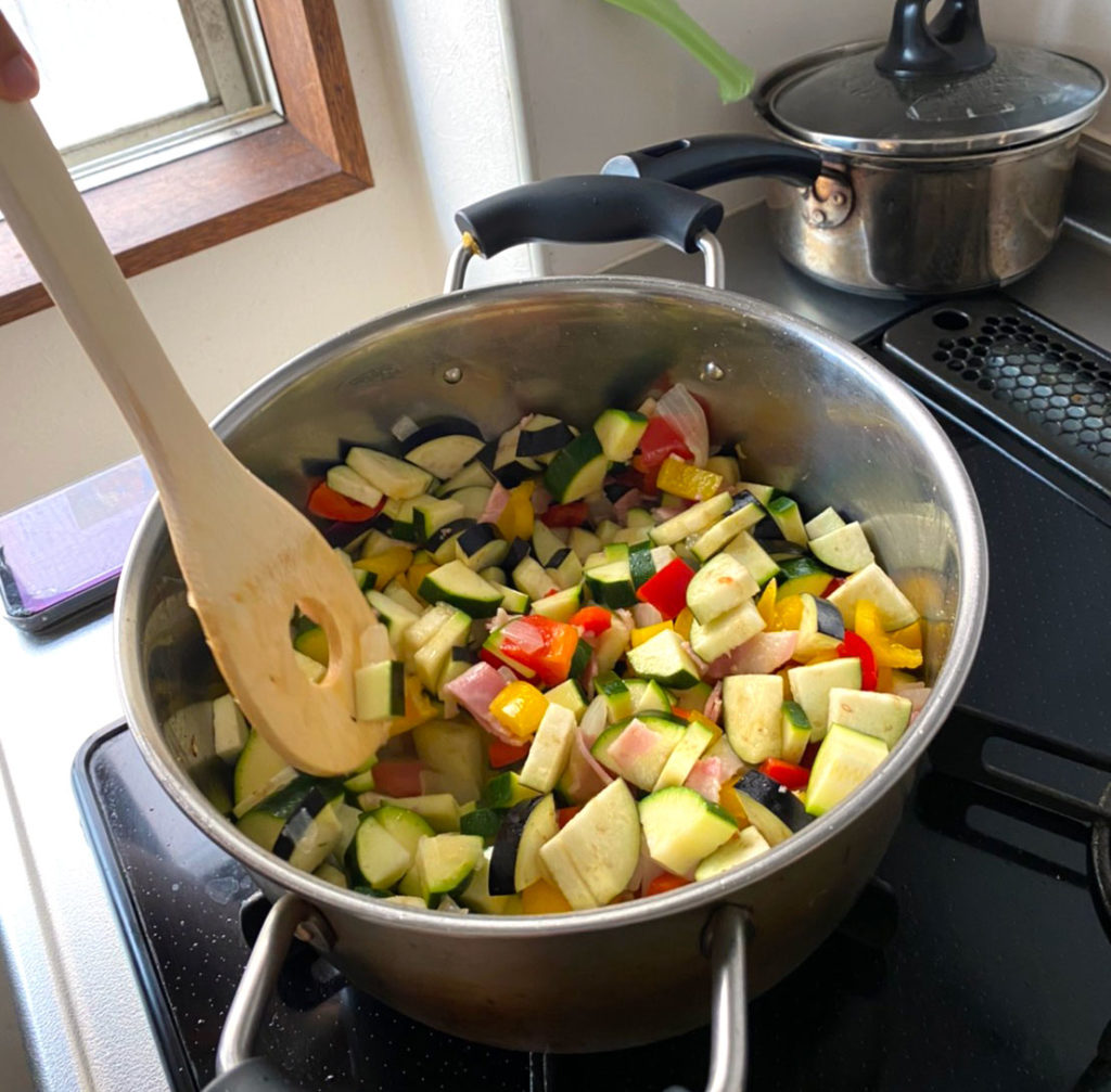 何はともあれ具材をカット。ズッキーニ、パプリカ、ナスなどをカットしていきます。