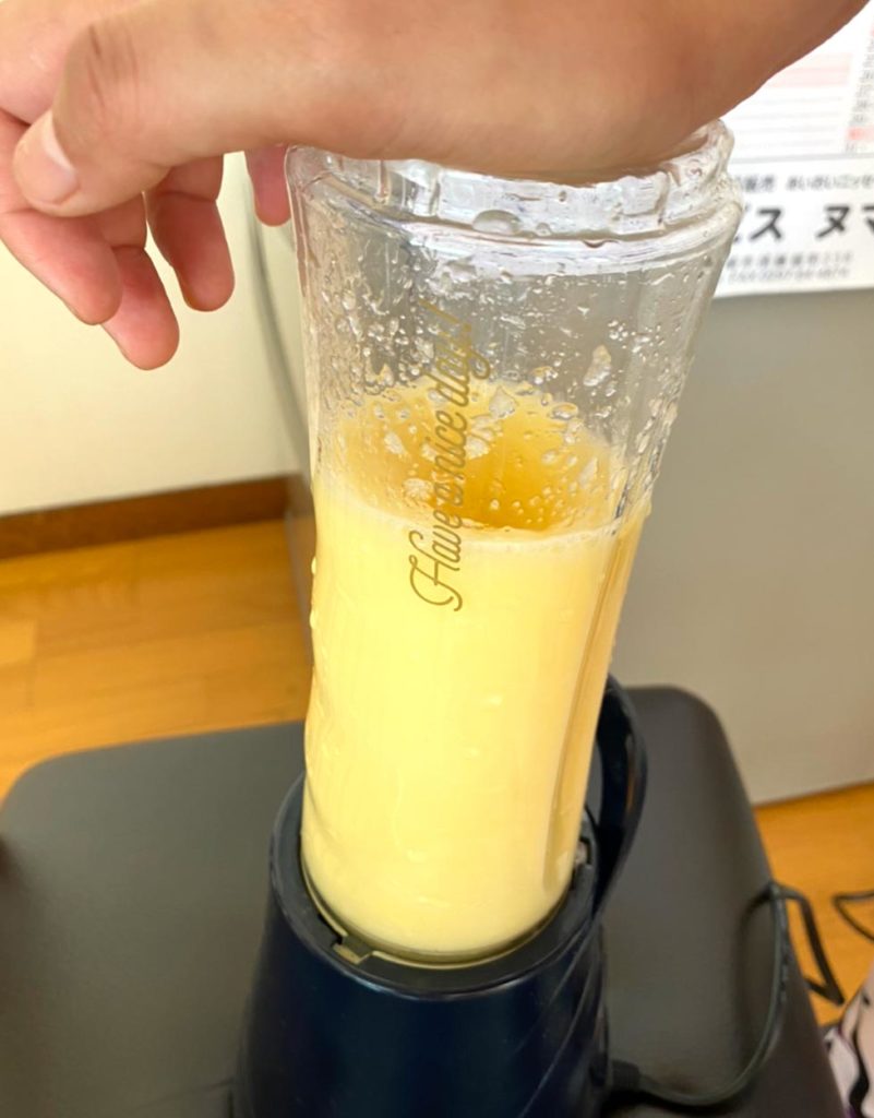 手作りのリンゴジュースは酸化すると、すぐに色が暗くなるので、手をかけて作った人しか飲むことができないおいしさです♪